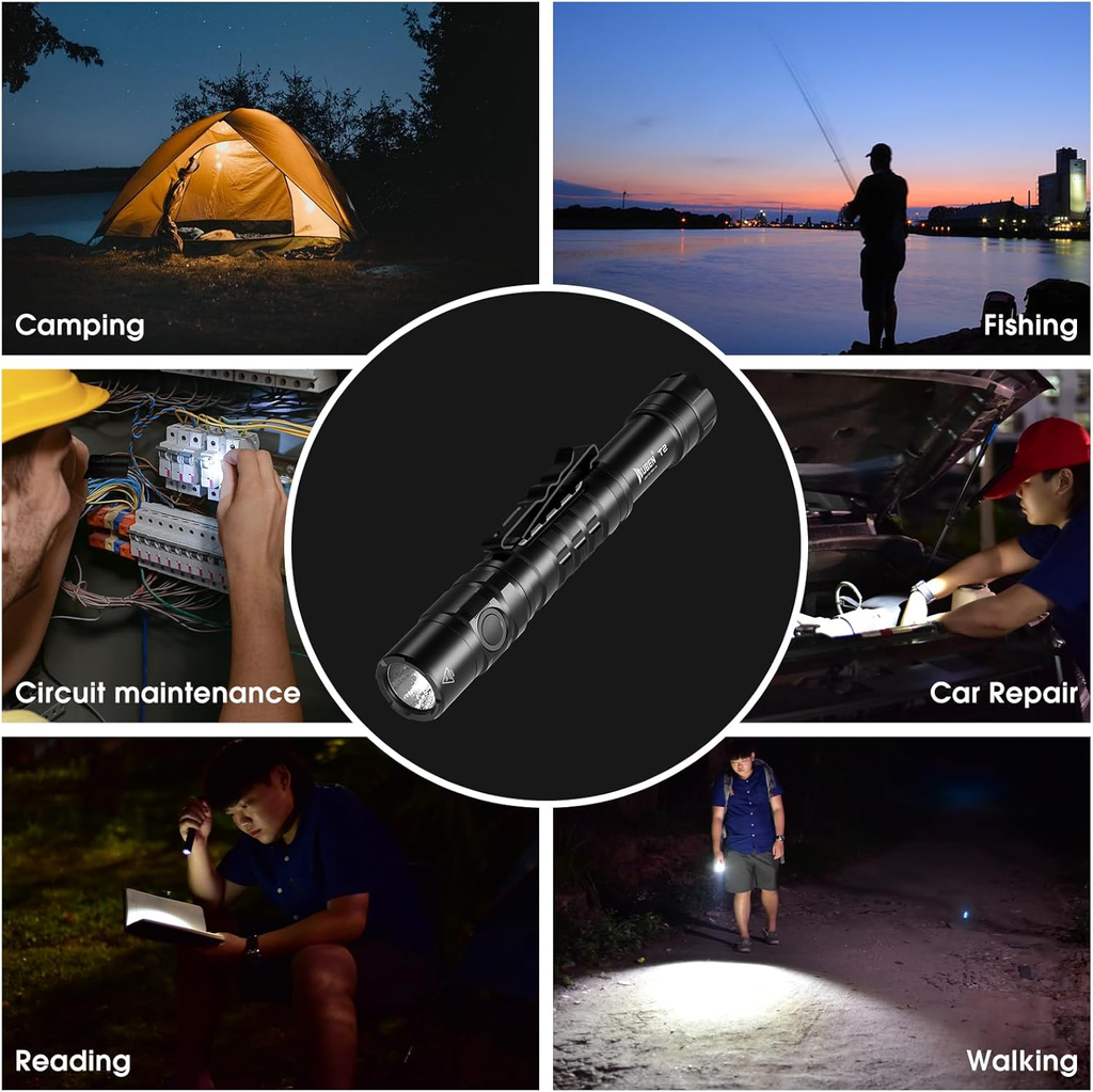 Cuenta con múltiples modos de iluminación, cuerpo resistente a impactos y certificación IP68, lo que garantiza un funcionamiento confiable incluso en condiciones exigentes y bajo el agua. Funciona con batería recargable WUBEN ABE3100C e incluye carga por USB Tipo-C.