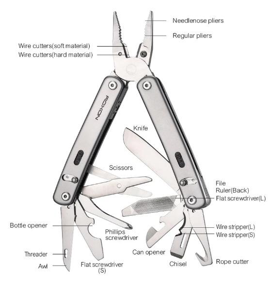 Alicates: de punta fina, regulares, cortadores de alambre (para materiales blandos/duros) y cortador reemplazable. Herramientas de corte: Navaja, cortador de cuerda. Herramientas multiusos: Tijeras largas, lima, regla y destornilladores planos, destornillador Phillips (PH1). Abridores y más: Abrelatas/abrebotellas, cincel y pelacables, enhebrador y punzón. Comodidad: Clip para cinturón integrado. Accesorios adicionales: Funda MOLLE de nailon: Almacenamiento duradero para usar en cualquier lugar. 2 cortadores reemplazables: Prolongan la vida útil de la herramienta. Destornillador T8 y ayudante de instalación: Montaje seguro y sencillo. 10 espaciadores: Personalización ligera. 3 estuches de almacenamiento: Almacenamiento organizado para sus módulos. Solo Marco FLEX La opción Solo Marco FLEX te permite crear tu multiherramienta definitiva. Personalízala con hasta 10 herramientas de una ranura y 2 herramientas largas (una por mango). Explora infinitas combinaciones en nuestra página de Implementos FLEX y crea una multiherramienta a tu medida.