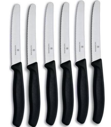 6 cuchillos individuales, cada uno con una hoja de 11 cm de longitud, pensados para uso doméstico o profesional en cocina.